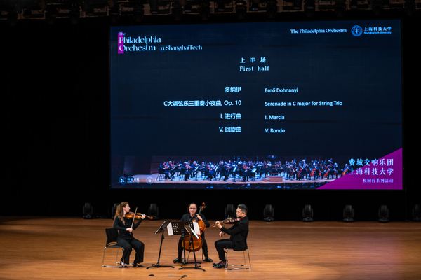 随着夜幕徐徐降临,费城交响乐团在上科大的活动进入了高潮。当天的“压轴大戏”室内乐演奏会在学校会议中心举行。